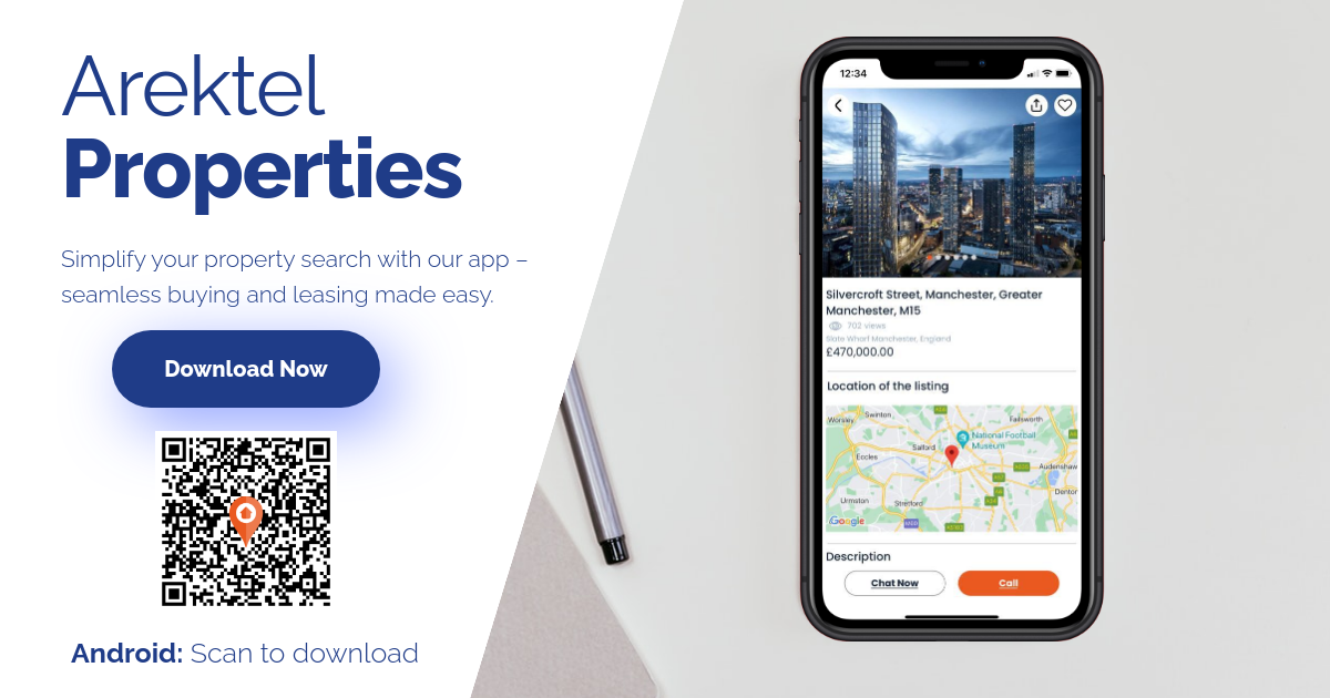 Arektel is a leading property website and app, offering an extensive range of properties for individuals, tenants, property owners, and real estate professionals. Our mission is to simplify and enhance the property search, buying, renting, and selling experience by providing a user-friendly platform with personalized alerts, property valuation services, and a unique property swapping feature. Arektel prioritizes trust, transparency, professional support, and innovation to create a community of property enthusiasts. Whether you're seeking to rent, buy, sell, or swap, Arektel is your trusted partner in the real estate world, guiding you every step of the way. Welcome to a better way to property with Arektel.